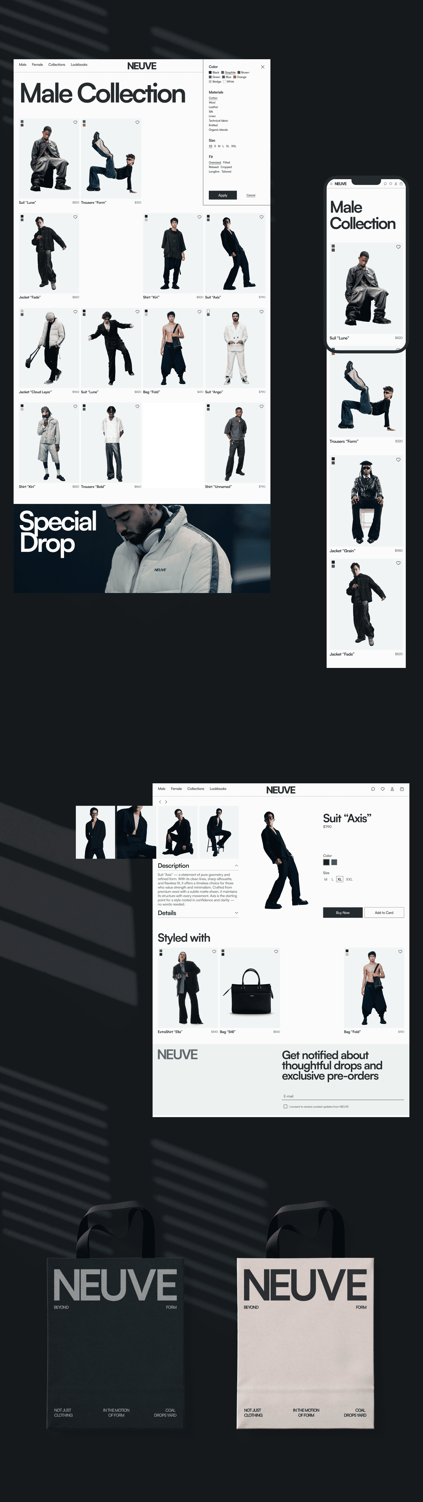 NEUVE is an independent fashion brand inspired by the art scene and minimalism. Before this project, all sales happened manually through Instagram DMs. The client wanted a website that would reflect their aesthetic and automate the shopping process. I created the website from scratch — from structure to UI design — with a focus on elegance, usability and mobile accessibility.